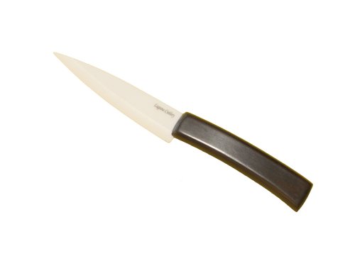 Laguna Cutlery Ceramic knives provide a fresh, modern, elegant outlook that will make a huge impression on whoever handles one and will become an irreplaceable arsenal in your kitchen. They have a multitude of benefits that surpass the capabilities of a traditional steel knife, which include a razor-sharp lightweight blade that makes the job of slicing food effortless and provides unprecedented balance. The ceramic blade is crafted with a zirconium oxide material that is known as the second hardest stone next to diamond, therefore it will retain its sharpness much longer than a steel blade. It will not rust, transfer odor, or brown your food unlike steel. Using a Ceramic knife when preparing food will creates new excitement to a normally tedious cooking experience. Any sophisticated home chef who enjoys cooking owes themselves the chance to try a Ceramic Knife. Laguna Cutlery provides a wide spectrum of styles, sizes, and colors to choose from; whether you prefer a classical knife for your everyday lifestyle or a vibrant, youthful knife for a fun kitchen, you are sure to find your match. So, purchase a Laguna Cutlery Ceramic Knife today and give a gift to yourself or a love one that will provide an everlasting impression; White Ceramic Blade, Matte Finish, Straight Ebony Wood Handle in Black Carboard Gift Box.