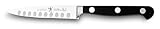 J.A. Henckels International 4" Hollow Edge Santoku is perfect for those smaller jobs working with fruits and vegetables. The hollow edge provides the ability to cut thin slices and keeps food from sticking to the blade